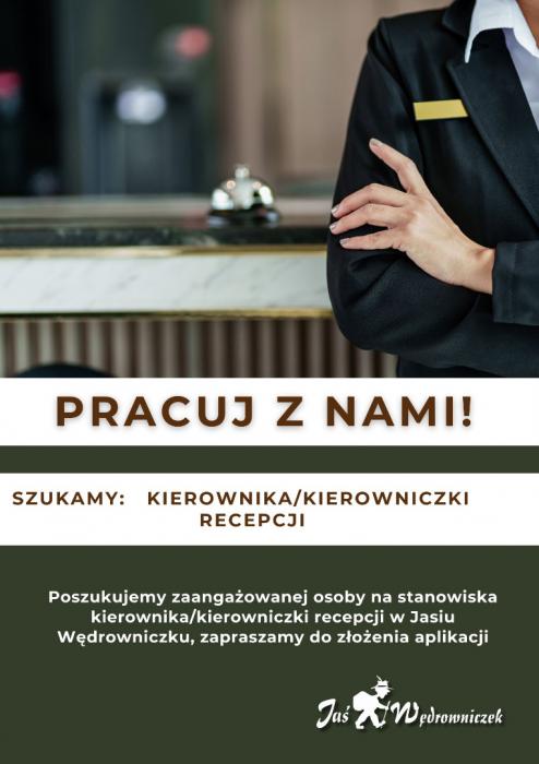 Poszukujemy doświadczonej, odpowiedzialnej i komunikatywnej osoby na stanowisko Kierownik Recepcji.